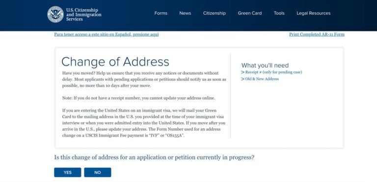 Step 1: Visit the USCIS Address Change Page